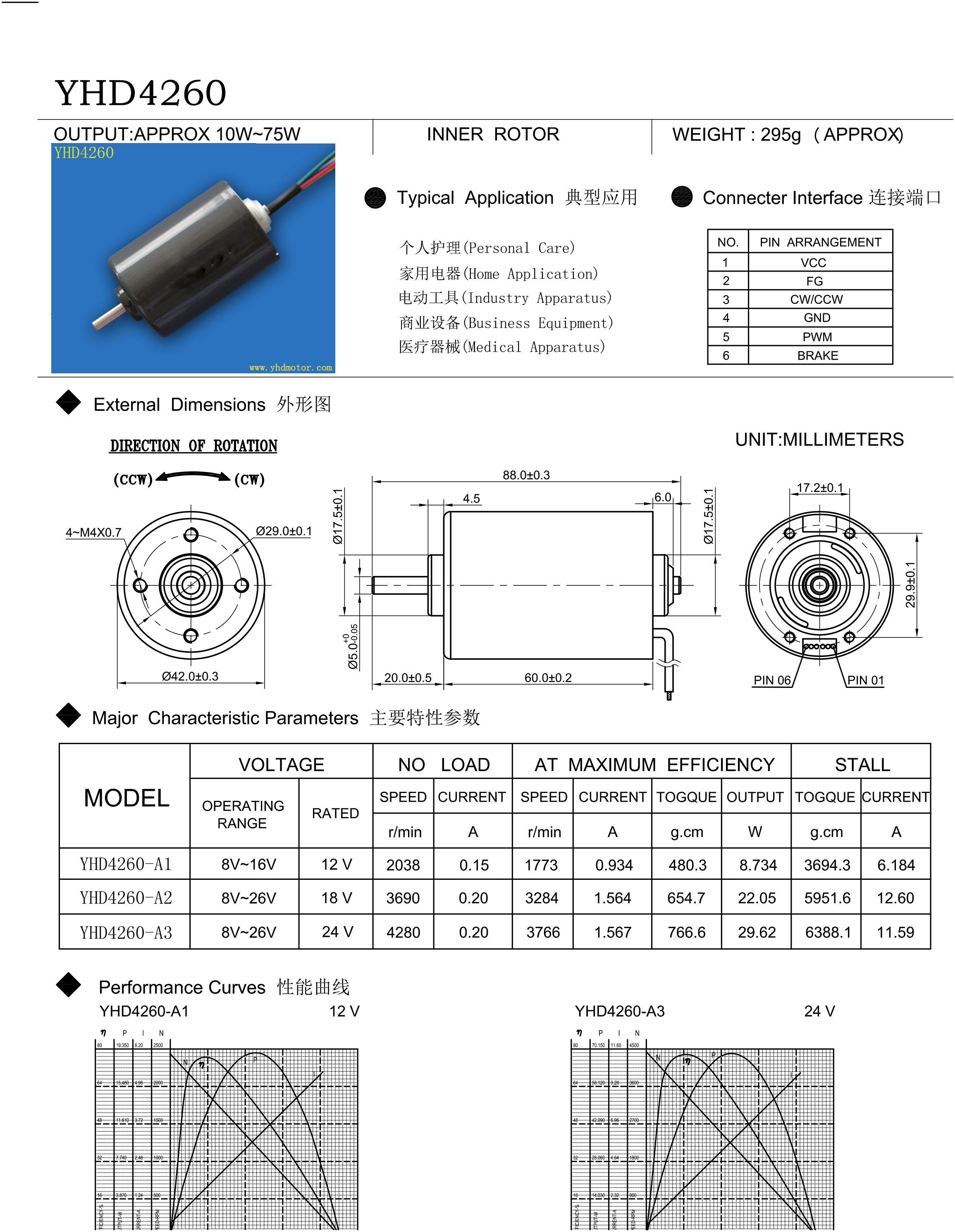 上述規(guī)格僅針對特定客戶,電壓、扭矩、轉(zhuǎn)速、電流、功率、輸出軸的特征和尺寸等均可以按照客戶的特殊要求進行調(diào)整。